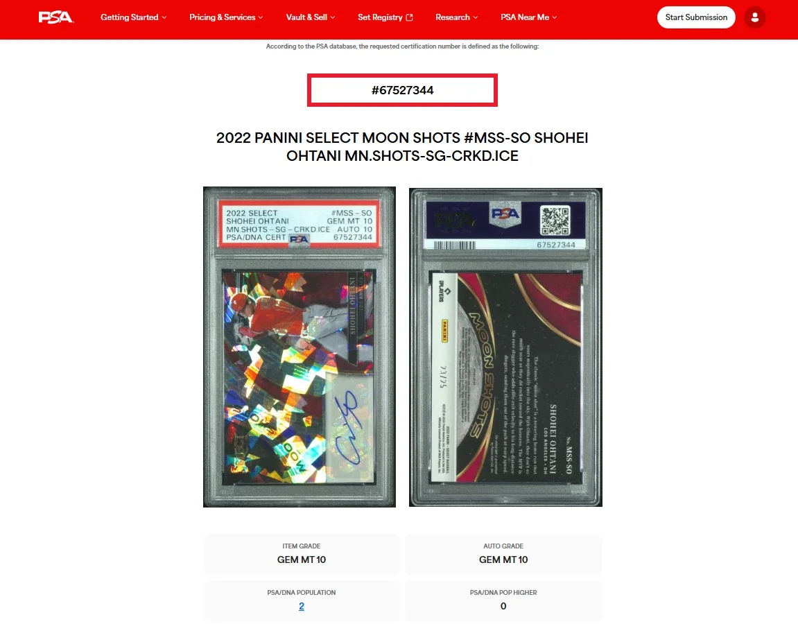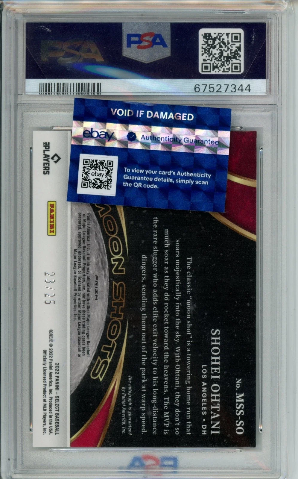 Merch Categories: All Merch Registration Pass All / All Merch Registration Pass 2022 Select Shohei Ohtani Moon Shots Autographi /25 PSA 10 Auto 10 Sale Price: $2,629.00 Original Price: $3,250.00 Sale T-Shirt $77.77